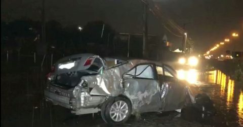 O condutor, conforme a PRF, desrespeitou a sinalização no trecho, passou por cima de alguns cones. Segundo a PRF, dois passageiros do veículo ficaram feridos.