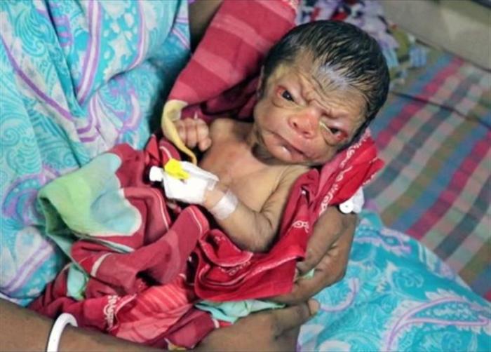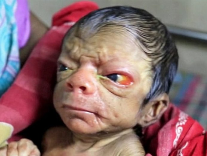 Um bebê surpreendeu a cidade de Magura, Bangladesh, ao nascer com uma rara doença genética. A condição, chamada de progéria, que afeta 1 em cada 4 milhões de pessoas, faz com que a criança tenha aparência de um idoso de 80 anos. Dessa forma, ele tem rugas, olhos profundos, um corpo pequeno e muito cabelo nas costas.