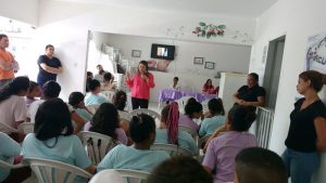 A campanha Outubro Rosa que alerta sobre o câncer de mama em mulheres e homens chegou nas unidades socioeducativas de João Pessoa. Nesta terça-feira (25) pela manhã, adolescentes em cumprimento de medidas socioeducativas participaram de palestra sobre o tema, juntamente com familiares, agentes e técnicos da Fundação Desenvolvimento da Criança e do Adolescente “Alice Almeida” – Fundac. A palestra ocorreu no refeitório do Centro de Apoio à Criança e ao Adolescente (Cendac).
