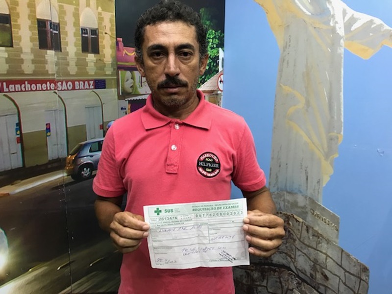 Desempregado, Cícero disse que já procurou trabalho em várias empresas da cidade, mas não conseguiu nada: “Eu trabalho de motorista, mecânico e o que tiver. Só quero ajudar minha esposa a fazer esse exame”, clamou.