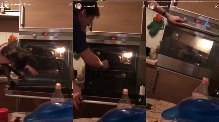 A polícia de Krasnoyarsk, Rússia, estão a procura de um jovem que filmou o momento em que ele joga um filhote de gato em um forno a 375ºC. Segundo as investigações, o rapaz tem 18 anos e se chama Kirill Bryozin. Ele estava sendo filmado por um amigo que não foi identificado.