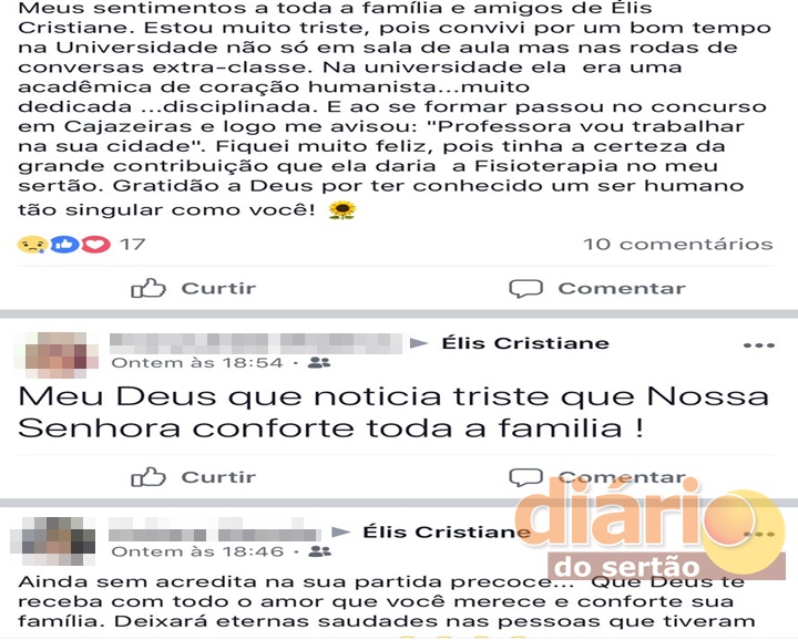 Amigos e familiares lamentaram a morte prematura da jovem fisioterapeuta Élis Cristiane Fernandes, de 30 anos.