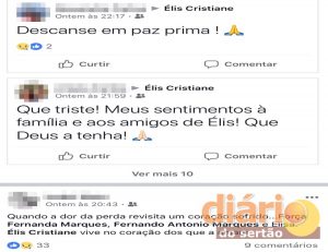 A jovem morreu em um grave acidente de carro na BR 405 entre os municípios de Pau dos Ferros e São Francisco do Oeste Potiguar, no Rio Grande do Norte na noite de quinta-feira (16). Élis dirigia o veículo quando acabou perdendo o controle do volante que saiu da pista e capotou.