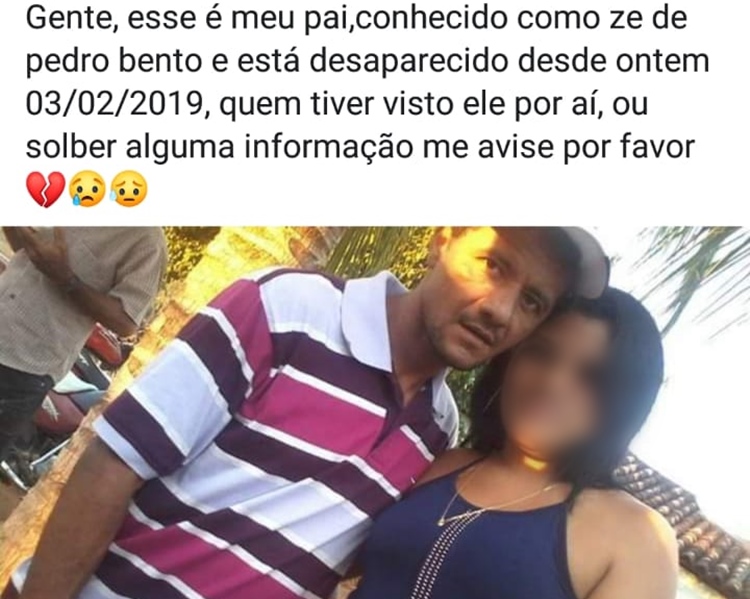 Familiares estão realizando apelo nas redes sociais para encontrar o popular, José Bento sobrinho, mais conhecido como “Zé de Pedro Bento”, de 38 anos, que saiu de sua residência em Nazarezinho, por volta das 16h deste domingo (03) e não mais retornou.