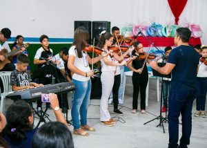 Houve também a distribuição de kits para gestantes, sorteios de brindes, apresentação de peça teatral e cultural: balé, flauta doce e violino, acompanhado de uma deliciosa recepção.