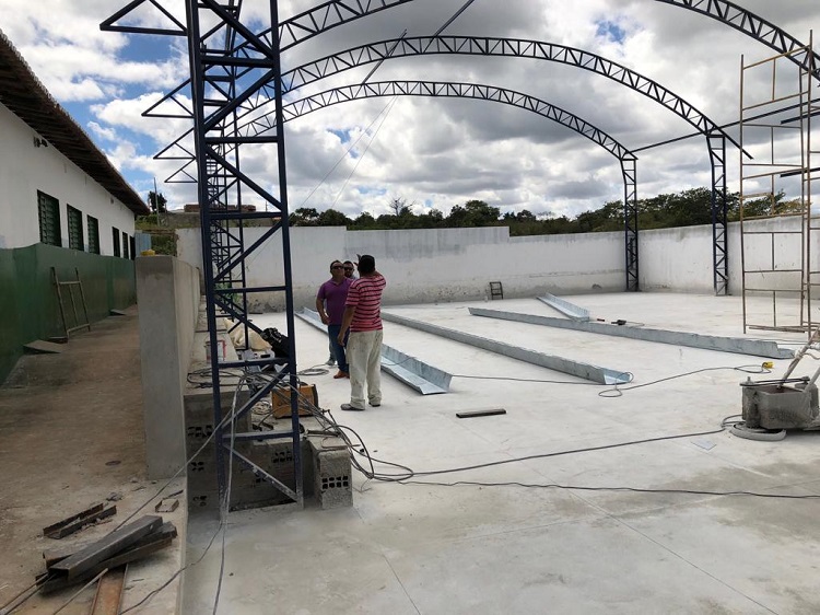 Prefeito de Monte Horebe acompanha obras de construção de ginásio poliesportivo na escola José Dias