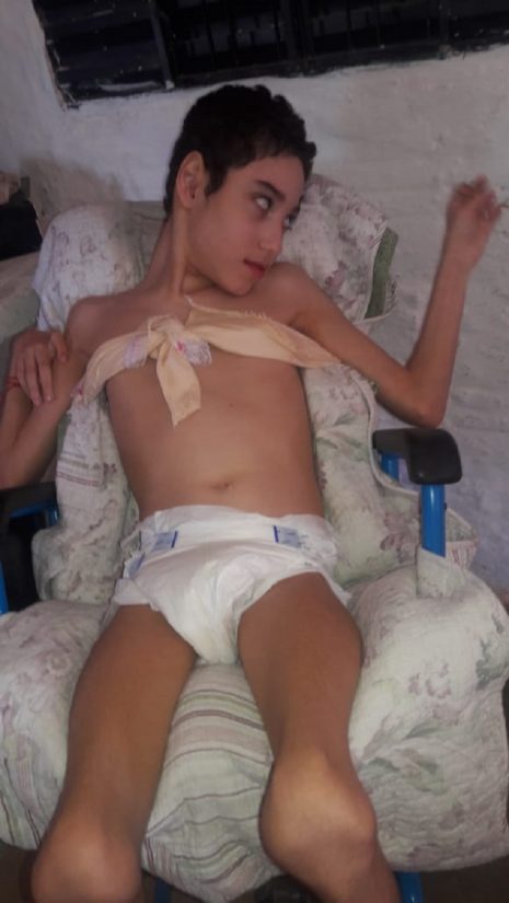 Segundo o pai do jovem, Galego Elias Eletricista, a cadeira de rodas que o jovem possui é comum e não se adapta ao seu corpo, que não possui sustentação na coluna vertebral, o que acaba prejudicando ainda mais, além de agravar o problema de atrofia.