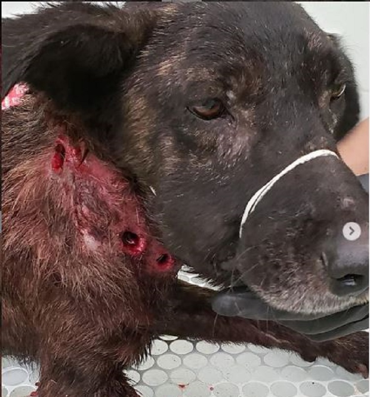 Os protetores dos animais de Cajazeiras estão fazendo um apelo para ajudar um cachorro que vagava pelas ruas de Cajazeiras com um arame enfiado dentro do pescoço e estava muito ferido e coberto por larvas.