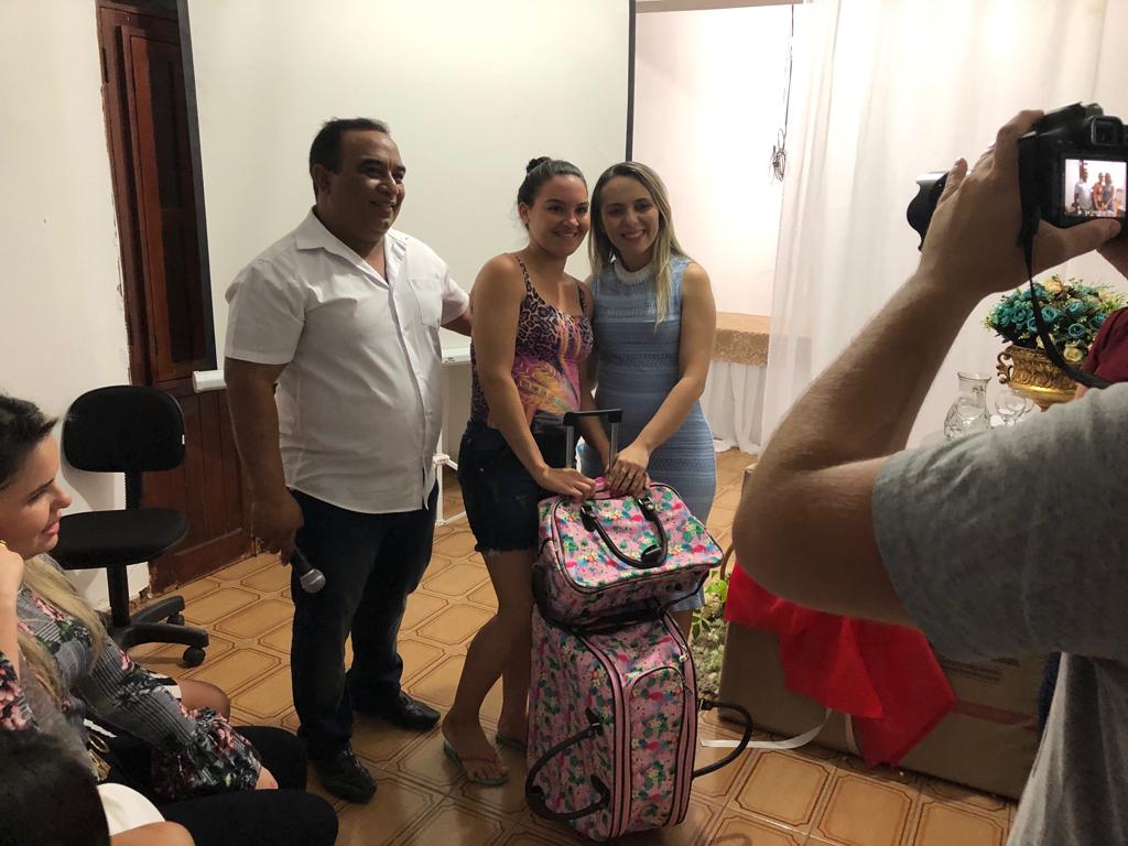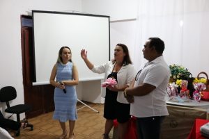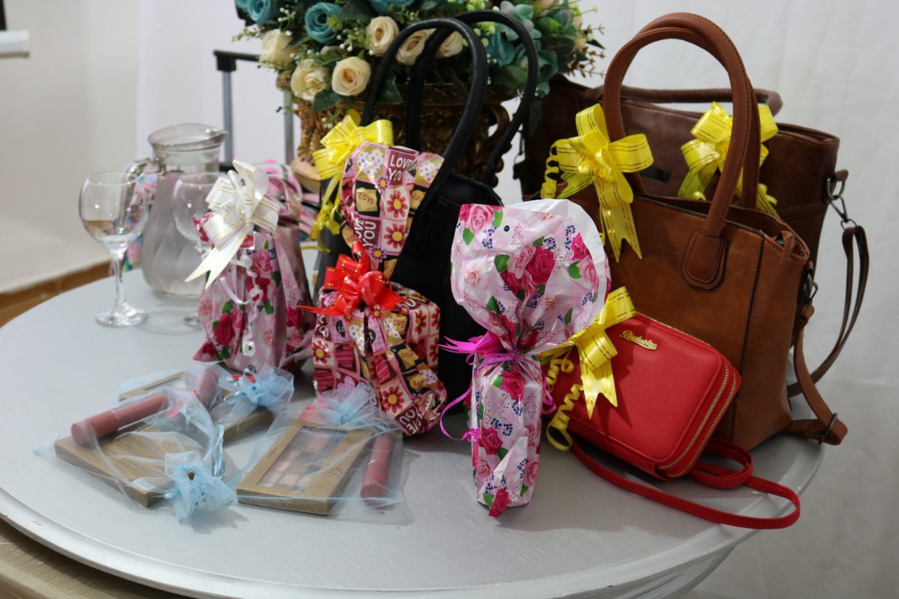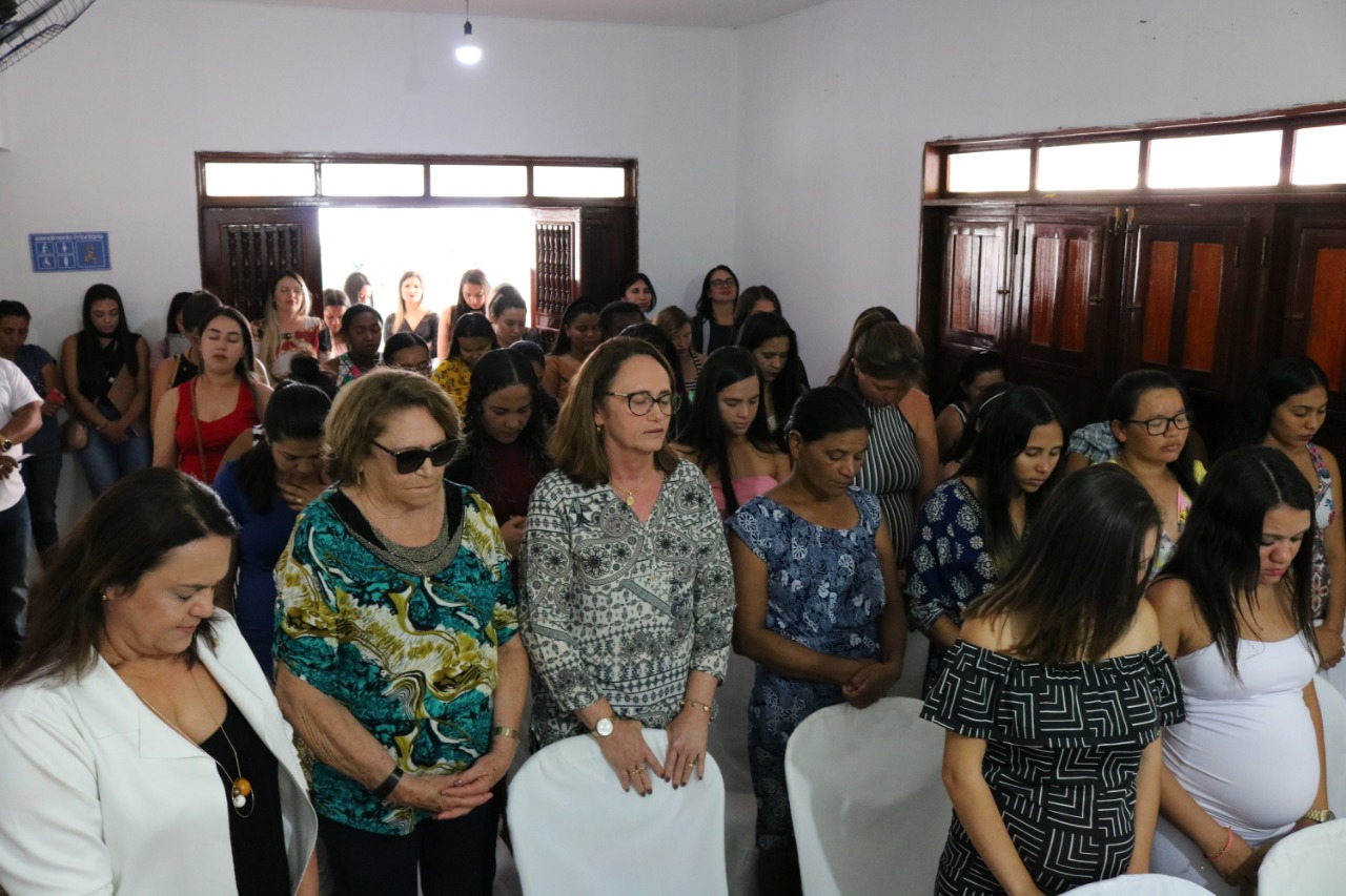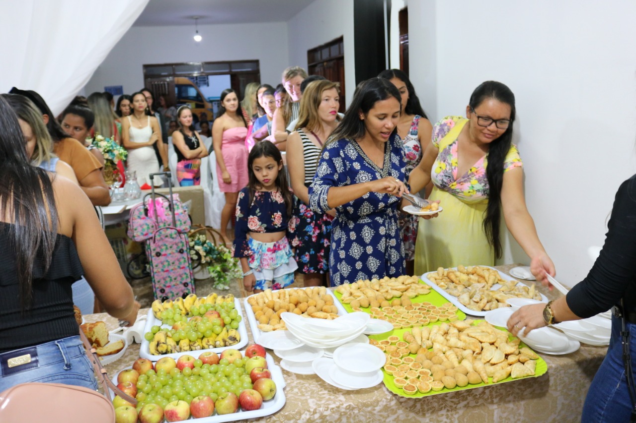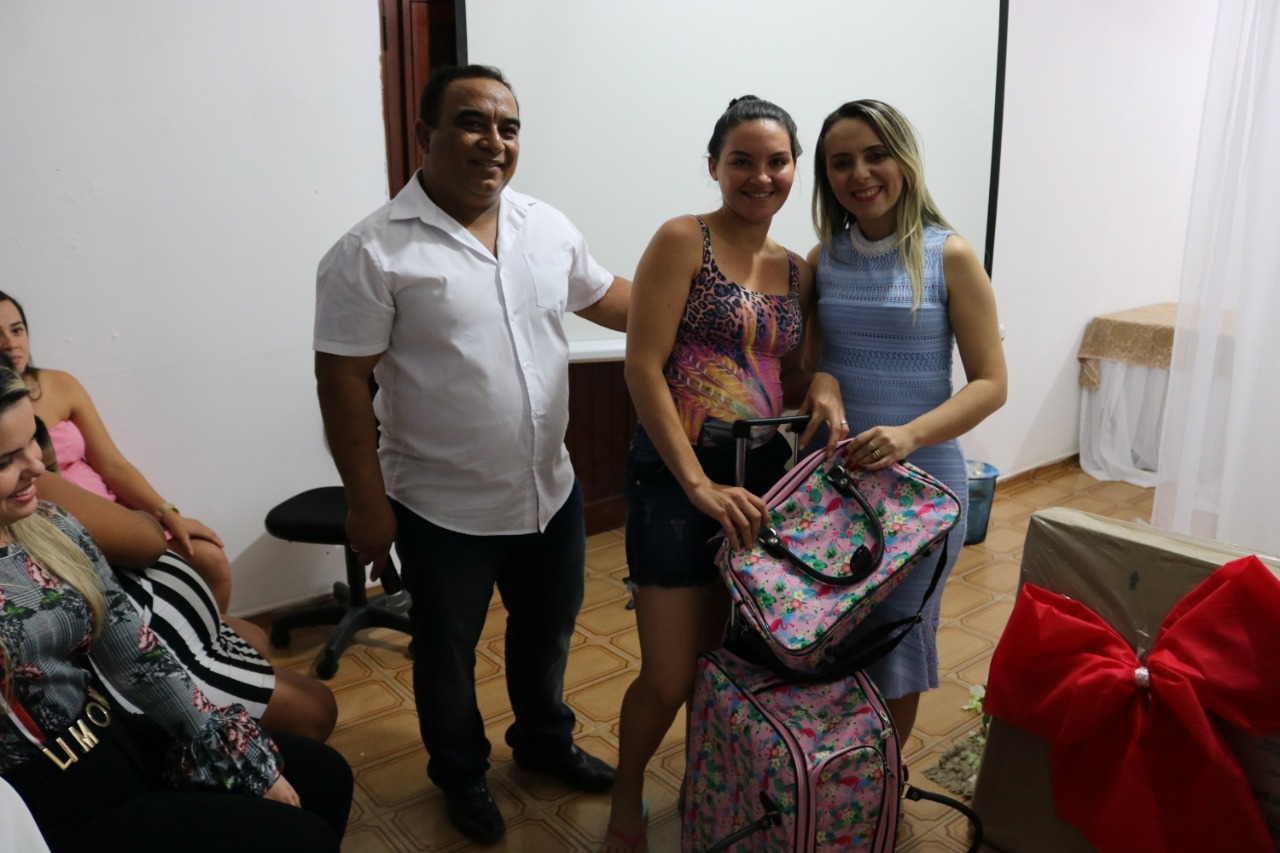 A Secretária de Ação Social Claudiana Alves e o Prefeito Marcos Eron realizaram a entrega de kits às gestantes, sorteios de brindes, berço, além de servir o café da tarde.