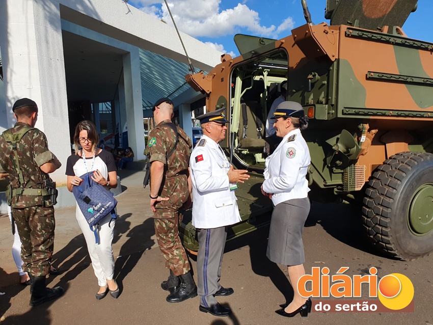 Simulação do Exército: Como parte da programação, na manhã desta quarta-feira (12), o Exército apresentou uma simulação de resgate de vítimas com utilização do carro Guarani na área externa, que chamou a atenção de diversos congressistas.