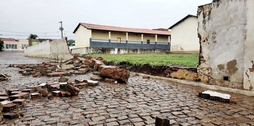 Chuva forte no Sertão paraibano derruba parte do muro de uma escola estadual na cidade de Uiraúna