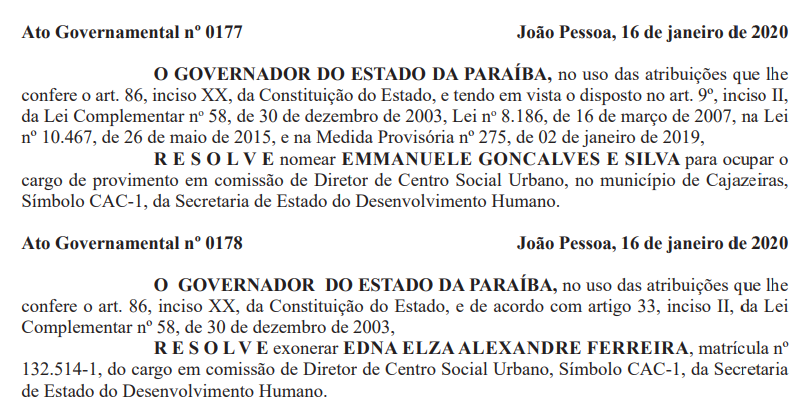 O Diário Oficial da União divulgado nesta sexta-feira (17), trouxe para o cargo de direção do Centro Social Urbano de Cajazeiras, a mudança na direção do cargo.