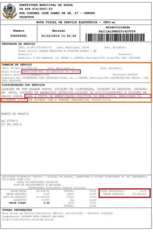 A emissora teria divulgado que na festa em comemoração ao aniversário do município, que ocorreu em dezembro de 2019, teria sido gasto o valor de R$ 204.950,00.