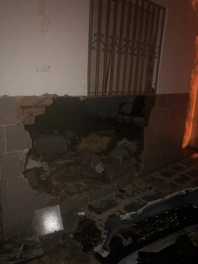 De acordo com informações da polícia, por volta das 00:50h desde domingo, uma guarnição da 5ª Companhia de Policiamento de Trânsito foi solicitada para atender uma ocorrência na rua Protásio de Sousa, no Jardim Oásis, onde um condutor perdeu o controle de seu veículo, bateu em outro carro e adentrou uma residência.