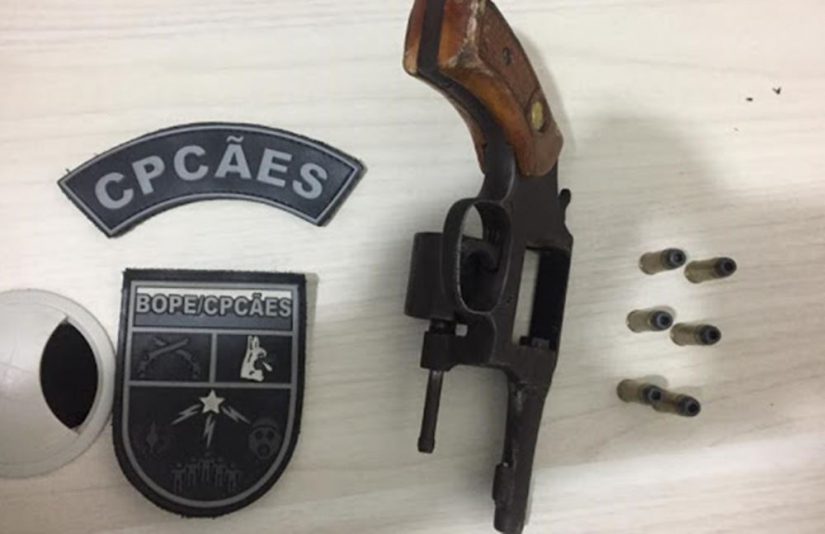 Os policiais do Canil Bope e da Patrulha Rural perceberam que o suspeito havia jogado algo dentro de um tambor de lixo, ao verificar, foi constatado que era um revólver