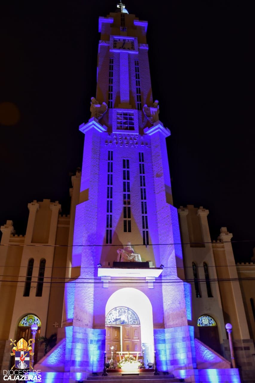 - Catedral de Cajazeiras iluminada para a Solenidade de Corpus Christi (Créditos: Pascom Diocesana)