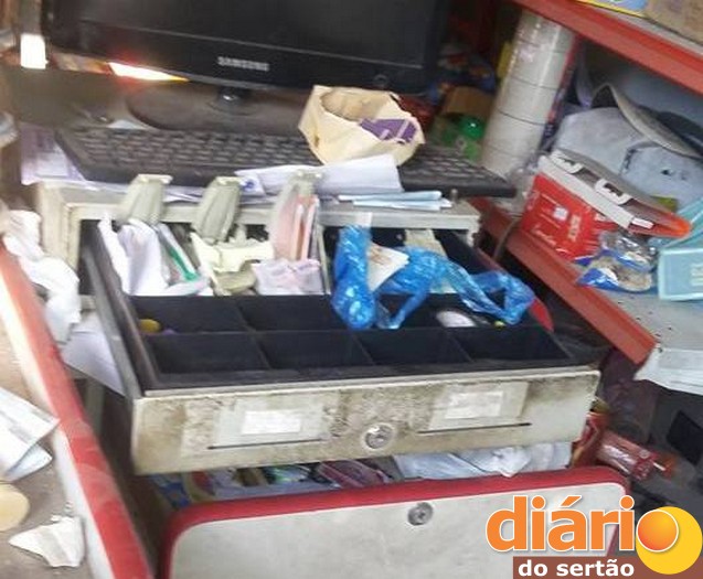 Eles esvaziaram as gavetas do estabelecimento, reviraram o caixa a procura de dinheiro e conseguiram levar um montante em moedas.