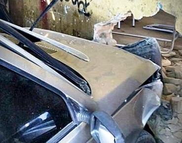 Homem perde controle de carro no Sertão da Paraíba e derruba parte de oficina mecânica. Foto!