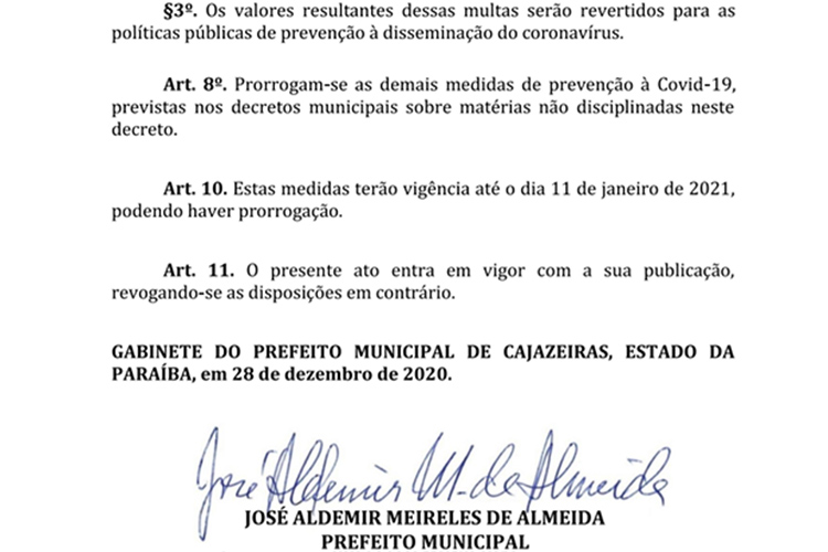 A medida que já estava em funcionamento, devido ao decreto publicado no dia 14 de dezembro, e nesta segunda-feira (28), a decisão foi prorrogado até 11 de janeiro de 2021.
