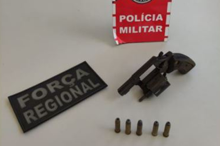 Durante patrulhamento de rotina as guarnições da Força Regional da Polícia Militar abordaram um carro com quatro ocupantes, e a arma, um revolver calibre 38 e cinco munições intactas estavam com o condutor do veículo.