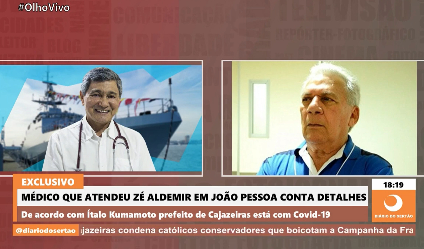 O médico Ítalo Kumamoto do Hospital Memorial São Francisco, em João Pessoa, que estava a frente do atendimento ao prefeito de Cajazeiras, José Aldemir, logo após ele ser transferido para a capital, na última sexta-feira (12), afirmou que pelo quadro clínico, o político está com o coronavírus. De acordo com o médico a tomografia mostrou que os pulmões do Zé Aldemir estavam de 20 a 25% comprometidos.