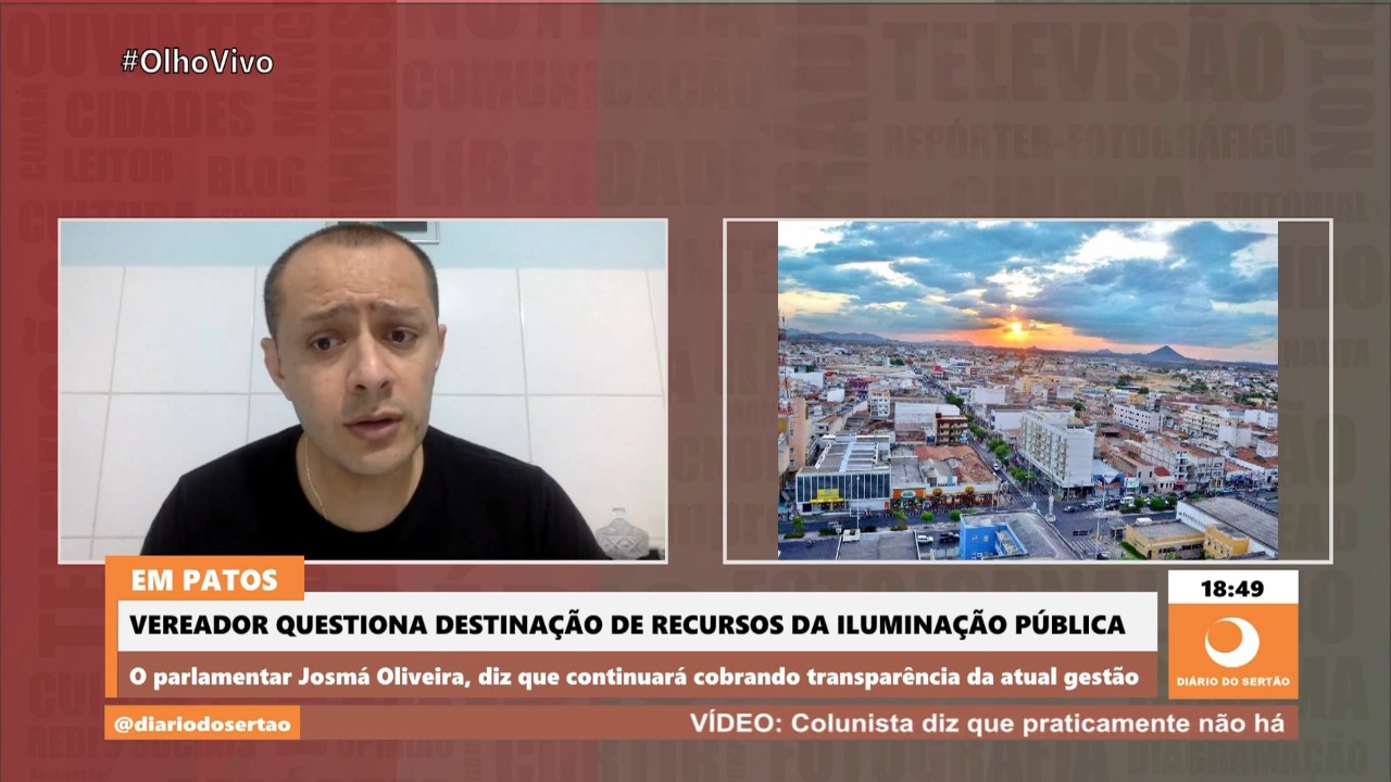 O vereador Josmá Oliveira (Patriota), eleito para a Câmara Municipal da cidade Patos, no Sertão da Paraíba, participou nesta terça-feira (16), do programa Olho Vivo da TV Diário do Sertão, para falar sobre questionamentos que fez a prefeitura da cidade, sobre a utilização dos recursos da taxa de iluminação pública, paga pelos moradores.