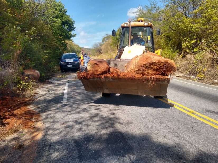 Desde às 05h da manhã desta quinta-feira (18), os homens do DER estão trabalhando para a retirada das pedras e varrendo a pista e já por voltas das 09h, a estrada foi liberada para o trânsito de veículos. “Ainda estamos concluindo o trabalho, que deve terminar por volta de 12h”, disse Madiel.