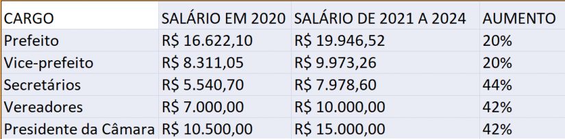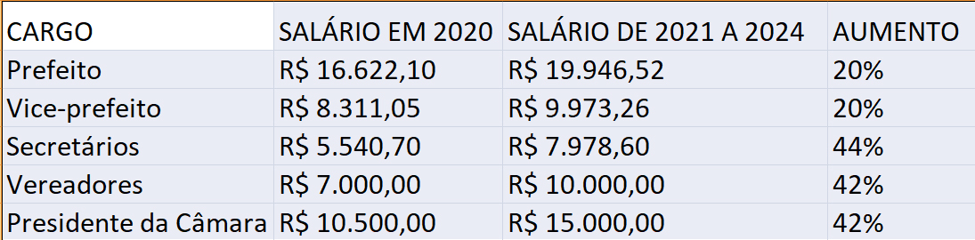 Confira a abaixo como devem ficar os salários, após os aumentos.