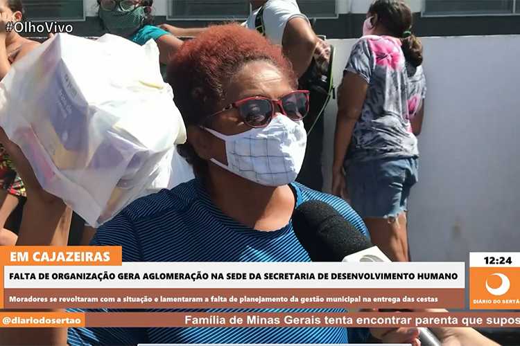 Maria Tânia é diabética e estava no meio da aglomeração esperando a cesta básica. (Foto: Reprodução)