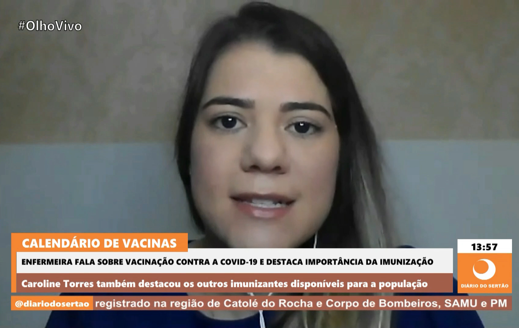 Caroline Torres, responsável técnica da Imunne Clínica de Vacinação nas unidades de Icó e Iguatu, no estado do Ceará e unidade Cajazeiras, no Sertão paraibano, participou do programa Olho Vivo da TV Diário do Sertão, desta segunda-feira (12), para esclarecer informações a vacinação da Covid-19 no setor privado.