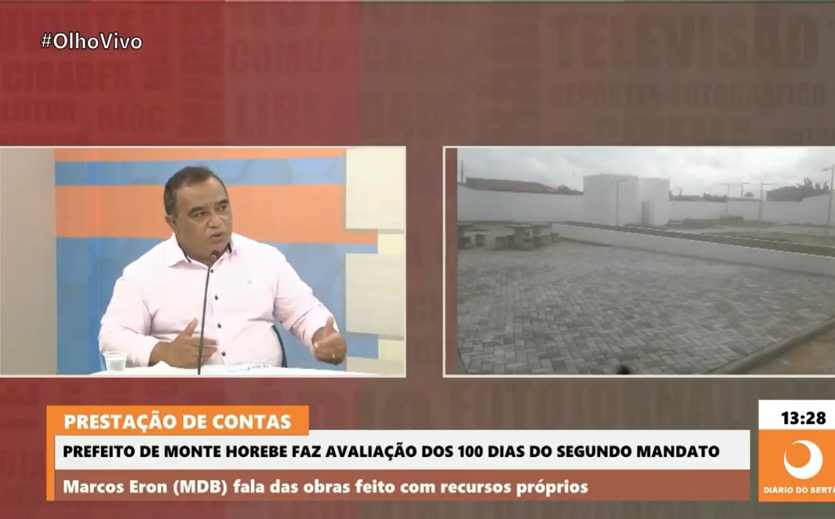 Marcos Eron (MDB), prefeito reeleito de Monte Horebe, cidade da região de Cajazeiras, no Sertão da Paraíba, fez um balanço dos 100 dias de gestão do seu segundo mandato, no programa Olho Vivo da TV Diário do Sertão, nesta terça-feira (20).