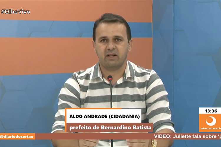 Aldo Andrade (Cidadania) prefeito de Bernardinho Batista, cidade da região de Cajazeiras, no Sertão paraibano, foi o entrevistado nesta quinta-feira (22), no programa Olho Vivo da TV Diário do Sertão e fez uma balanço das obras e serviços dos 100 dias de gestão. O gestou destacou o pagamento dos salários do servidores dentro do mês trabalhado, inclusive o do mês de abril que será realizado nesta sexta-feira (23).