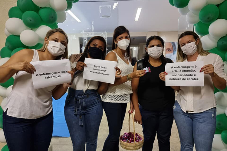 Os coordenadores da unidade hospitalar recepcionaram os enfermeiros e enfermeiras durante a troca de plantão com aplausos, músicas, mensagens e entregas de chocolates.