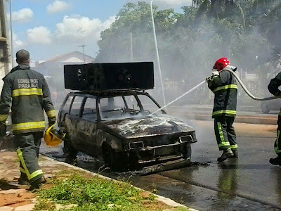 O automóvel de marca FIAT, de cor cinza, que pertencia ao produtor de eventos, Marujo Promoções (Aécio), que acabara de participar de um evento de aeromodelismo que está acontecendo no Aeródromo Epitácio Alves da Costa, em Catolé do Rocha, pegou fogo nas imediações da Praça Prefeito José Sérgio Maia.