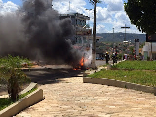 Incêndio destrói totalmente carro de som em praça pública no Sertão do Estado. Fotos!