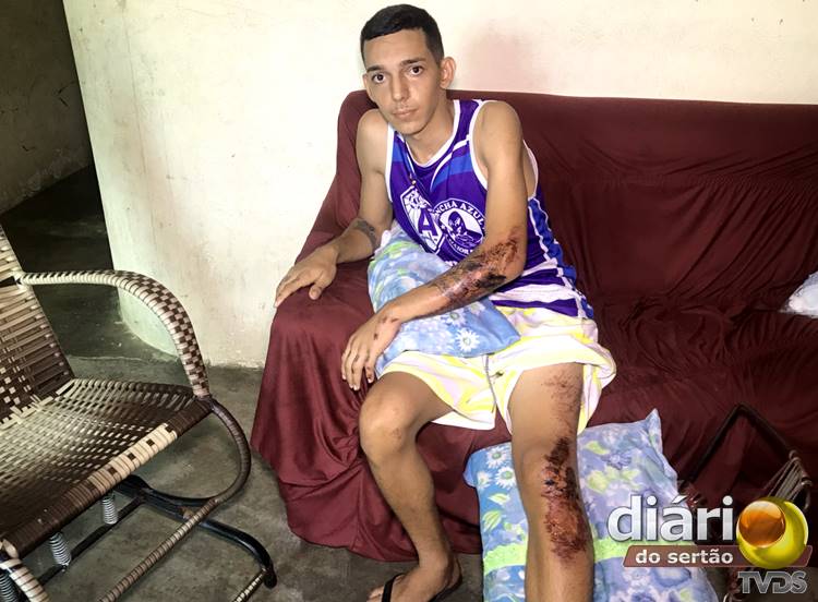 José Augusto, 19 anos, está sofrendo com vários ferimentos nos braços e pernas e quer justiça no caso. Ele pretende conseguir imagens de circuito externo de câmeras para identificar o motorista de um carro vermelho que colidiu na traseira da moto onde ele estava com um amigo.