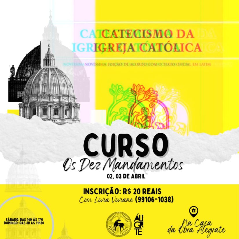 A Obra Álegrate, da Catedral Nossa Senhora da Piedade, realizará nos dias 02 e 03 de março, o curso dedicado aos Dez Mandamentos. A programação tem início no sábado das 14h às 17h, e no domingo das 8h às 11h30min.