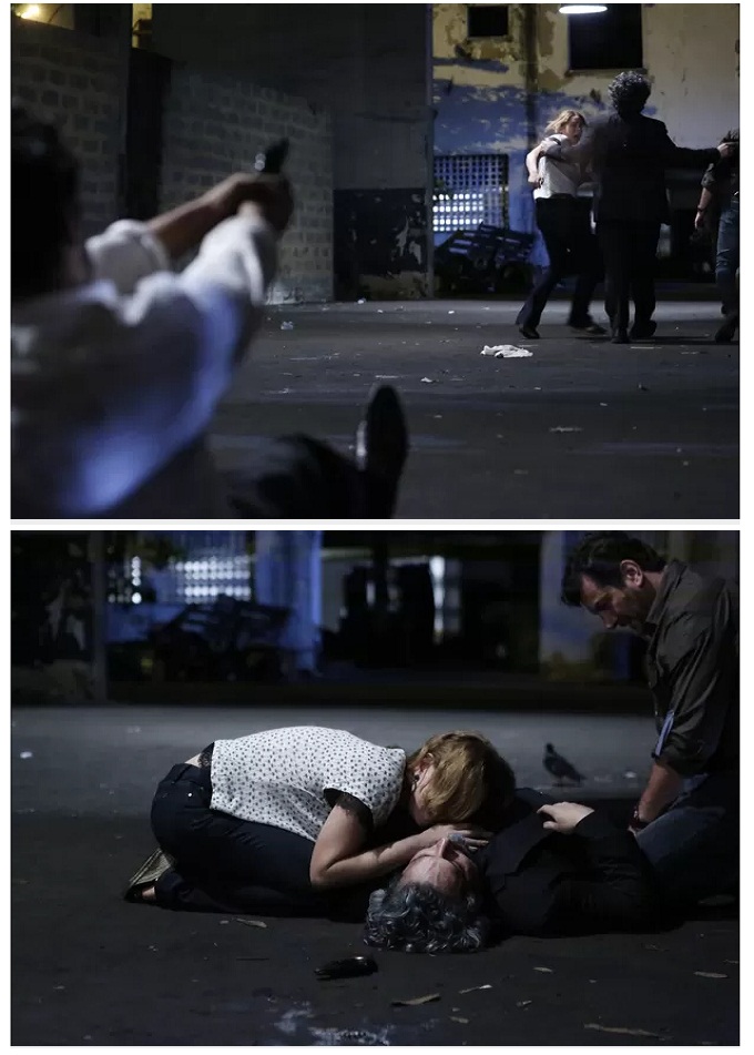 Na cena, Maurílio (Carmo Dalla Vecchia) recebia José Alfredo (Alexandre Nero) e Josué (Roberto Birindelli) à base de tiros em um galpão abandonado, mas o vilão acabava se distraindo e morria ao levar um tiro do Comendador.