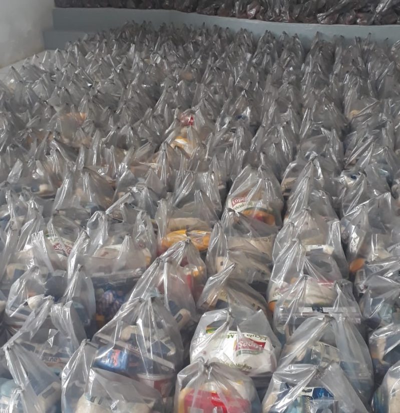 No total, são 675 kits. Os produtos que compõem os kits contêm 1 kg de arroz, 1 pacote de cuscuz, 1 pacote biscoito salgado, 1 fécula de mandioca, 1 margarina, 1 pacote de macarrão e 1 kg de macaxeira. Os produtos substituem a merenda escolar nos dias letivos com aulas remotas.