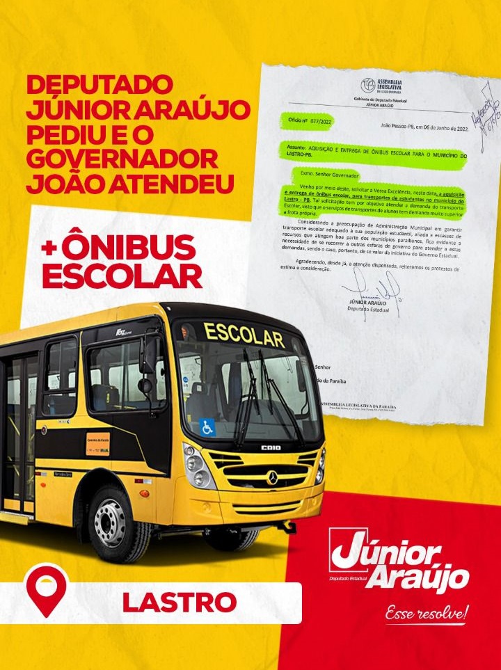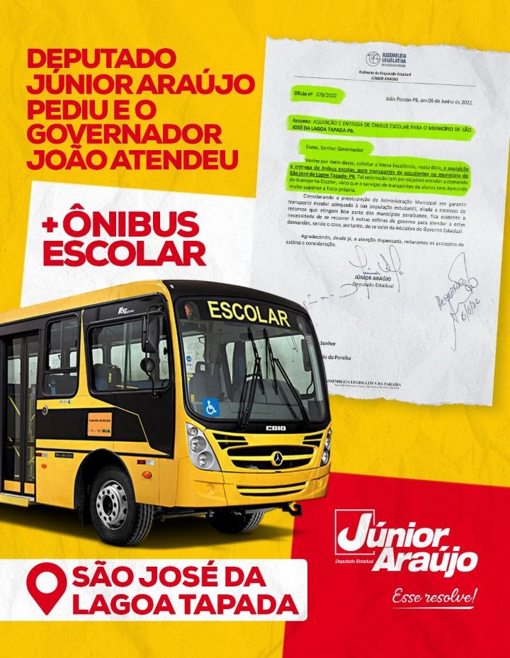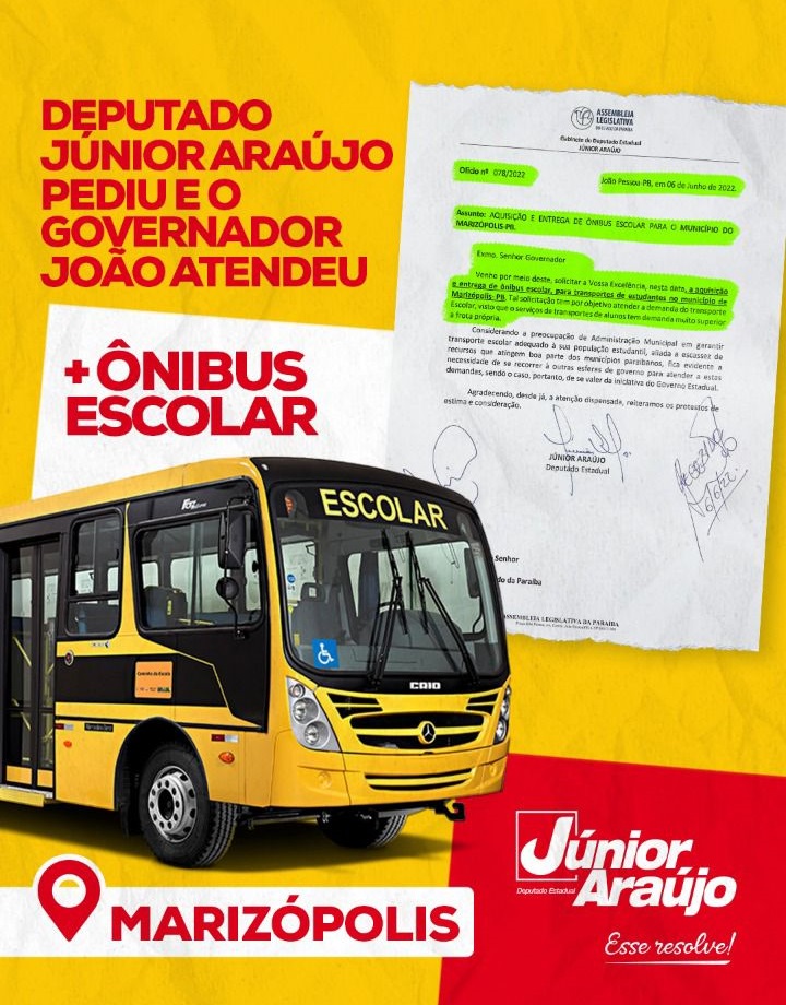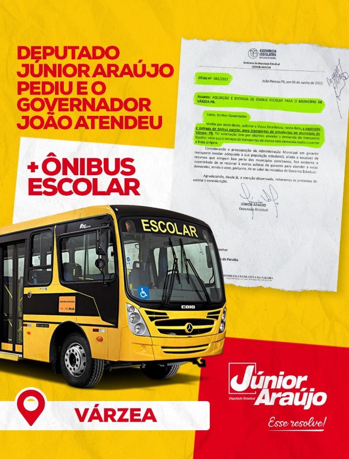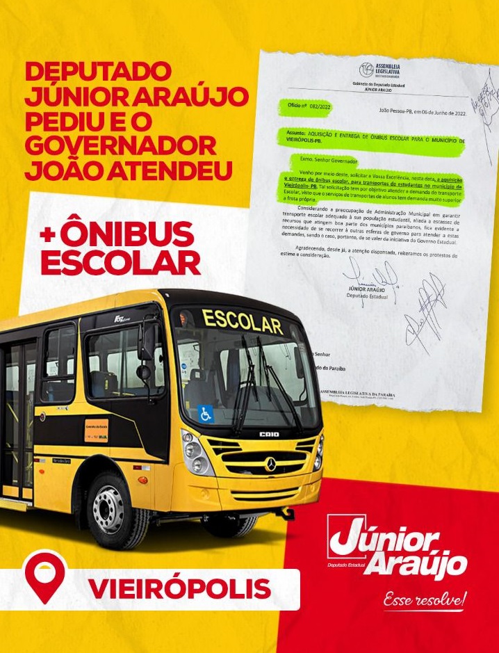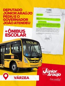 O deputado estadual Júnior Araújo (PSB) agradeceu ao governador João Azevêdo (PSB) por atender à solicitação de ônibus escolares para alguns municípios da Paraíba que compõem a sua base de aliados.