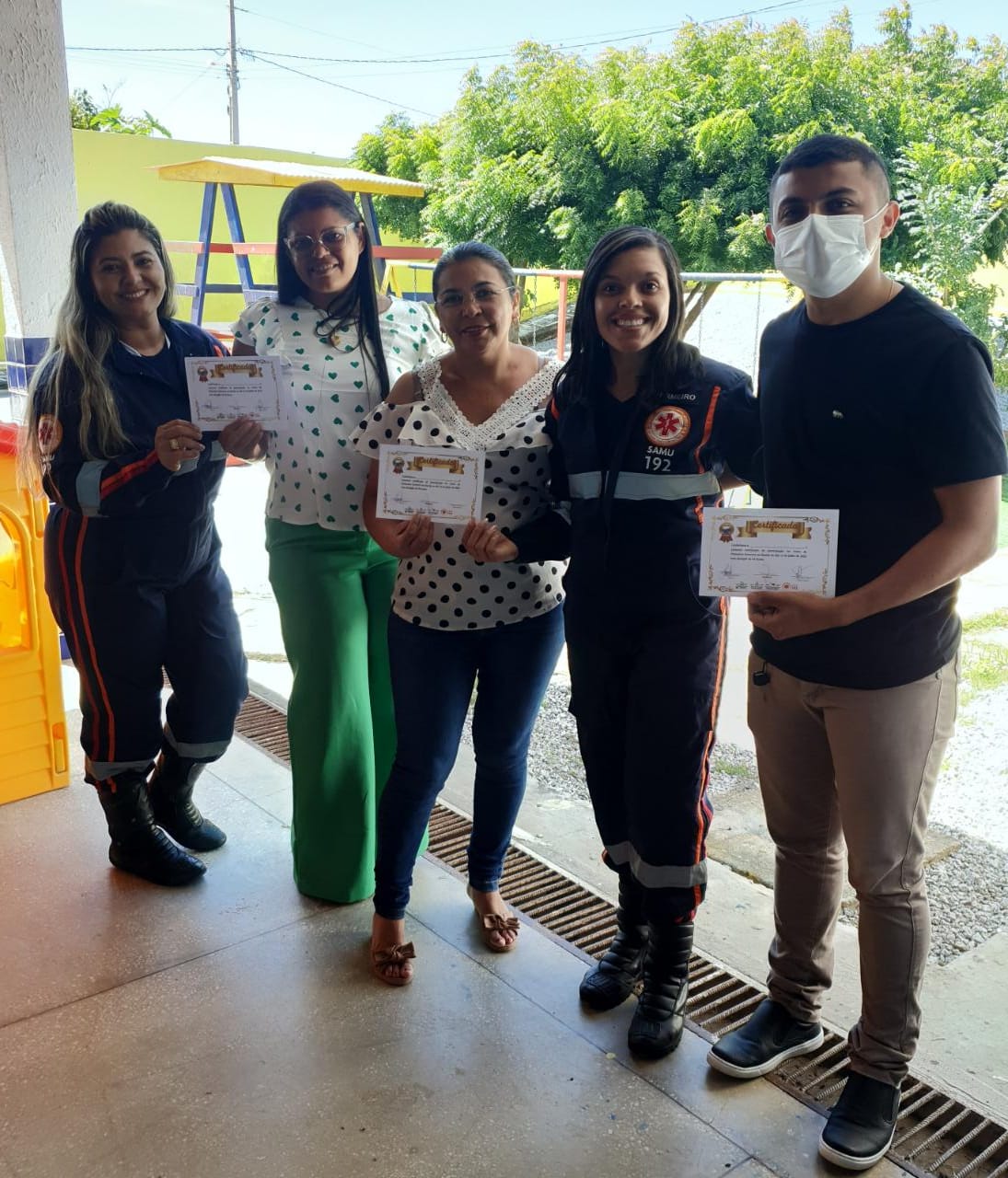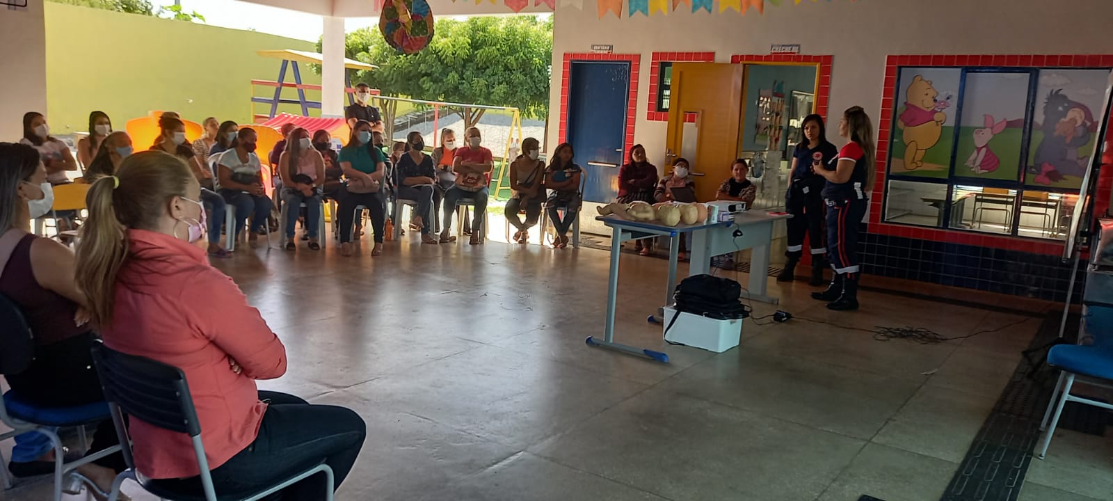 De acordo com a Secretaria de Educação, professores e funcionários de escolas que atendem crianças em tempo integral e parcial das unidades de ensino de Educação Infantil foram capacitados pela bombeira e secretária de Saúde Ruth Rany e pela enfermeira Patrícia neste dia 07 de julho.