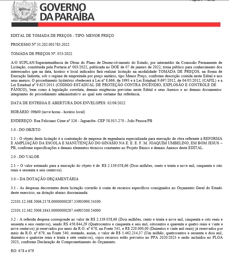 Além da reforma de uma creche que está em sua fase final de conclusão, João Azevêdo destinou recentemente novos recursos da ordem de mais de R$ 2 milhões de reais para a reforma e ampliação da Escola Joaquim Umbelino, assim como da manutenção do ginásio poliesportivo.
