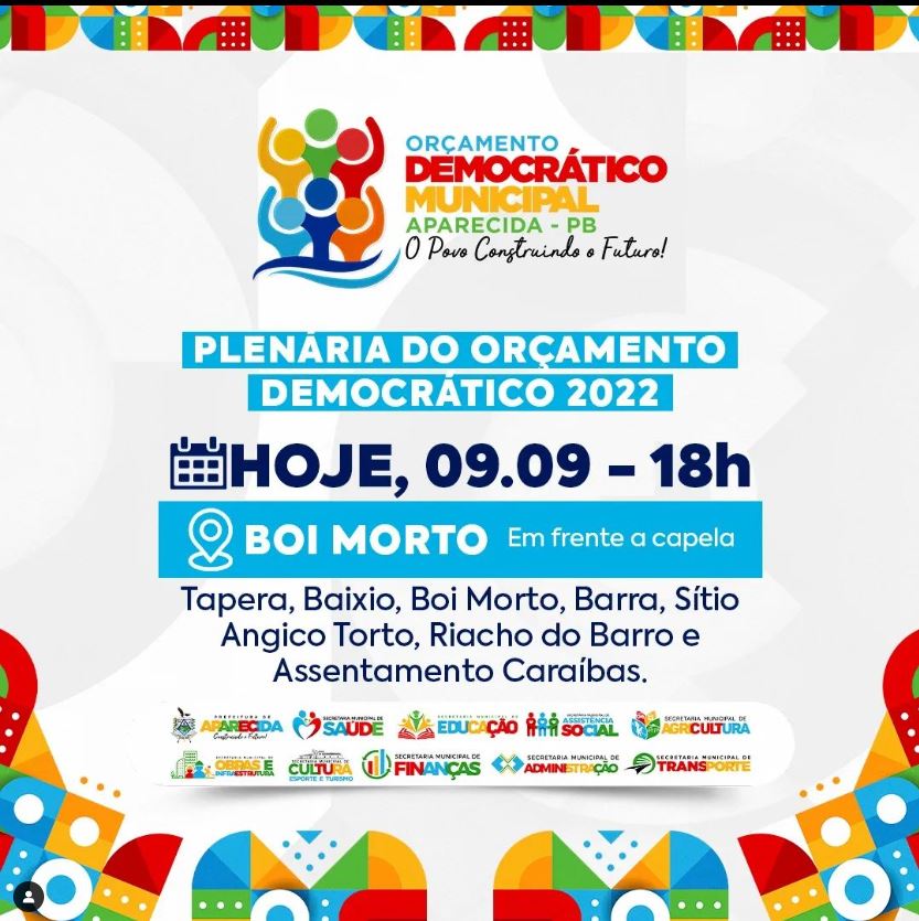 A prefeitura de Aparecida segue com seu cronograma de reuniões da Plenária do Ciclo 2022 do Orçamento Democrático Municipal. Na sexta-feira (09), o encontro aconteceu em frente a capela da comunidade de Boi Morto, reunindo as comunidades de Tapera, Baixio, Barra, Sítio Angico Torto, Riacho do Barro e Assentamento Caraíbas.