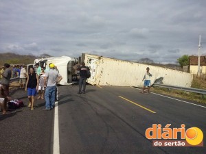 De acordo com informações da Polícia Rodoviária Federal, o motorista da carreta seguia no sentido Pombal a Sousa quando perdeu o controle do volante e o veículo acabou tombando no meio da pista interrompendo o trânsito.