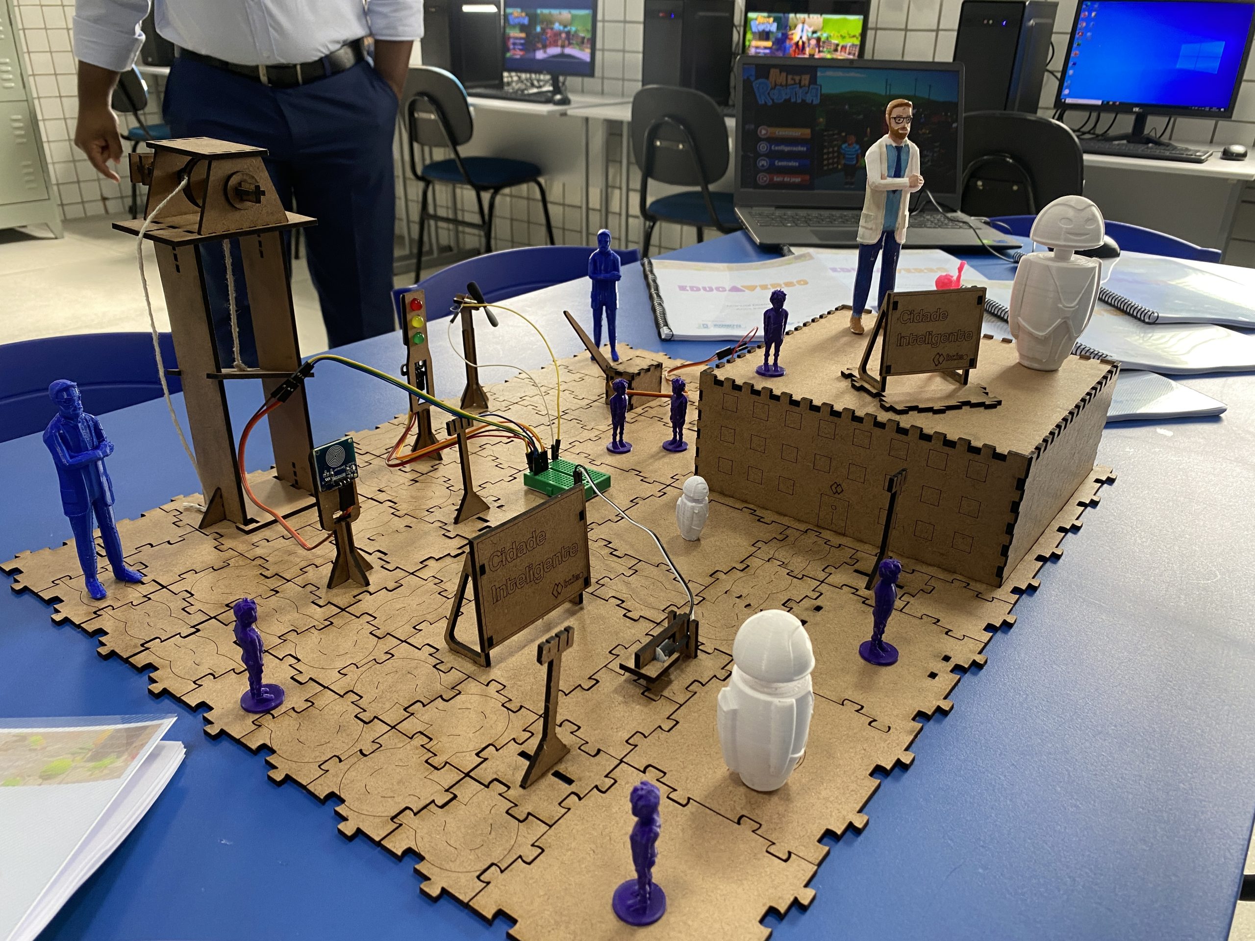O programa Educaverso disponibiliza uma plataforma virtual de game com linguagem educativa que auxilia os estudantes na aprendizagem dos conceitos teóricos da robótica. Após as aulas no ambiente virtual do metaverso, os alunos iniciam a prática, aplicando o conhecimento em maquetes e protótipos visando solucionar problemas urbanos reais.