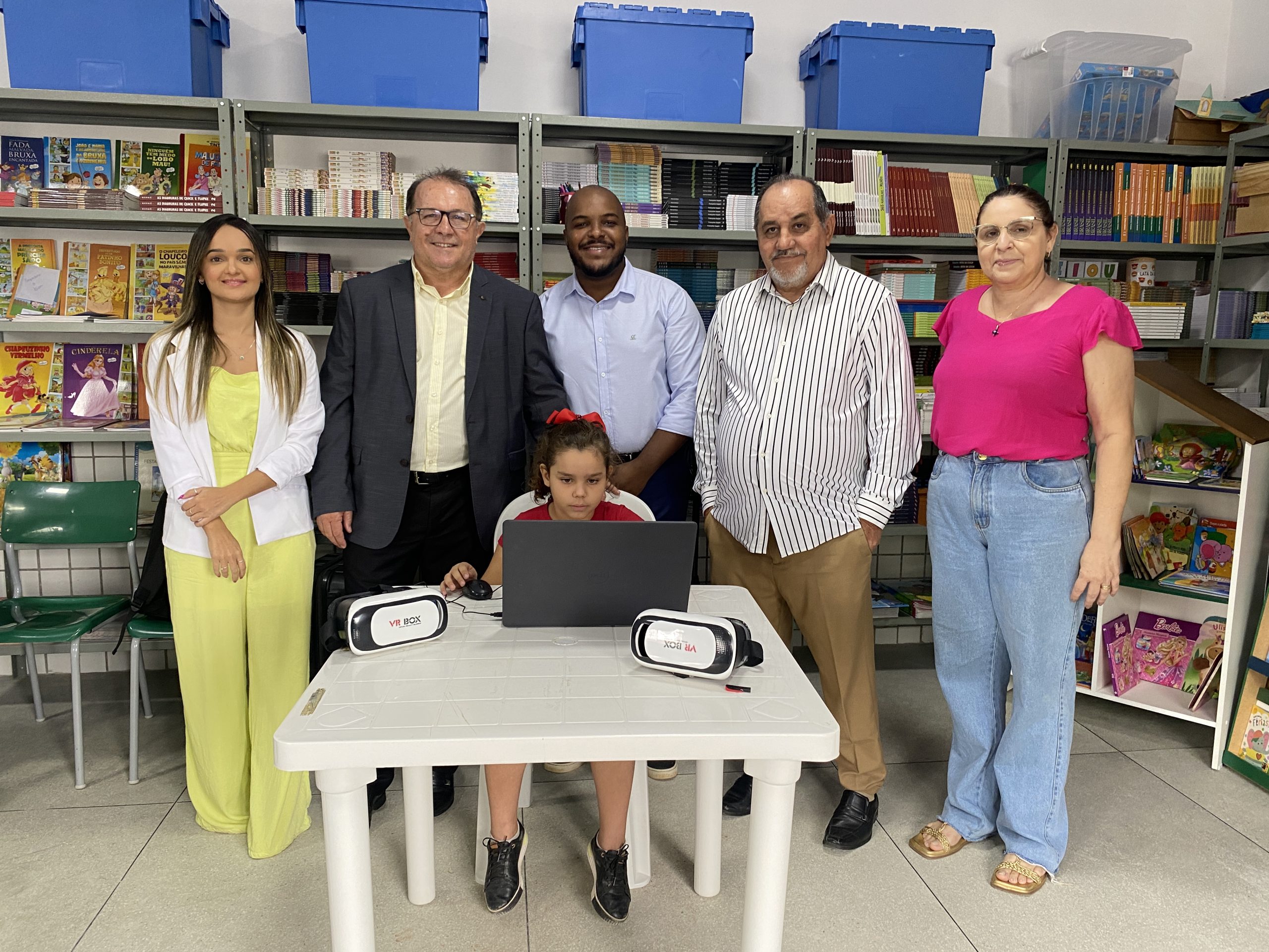 Em um momento de descontração, o prefeito Ceninha Lucena experimentou pela primeira o ambiente virtual do programa educativo.