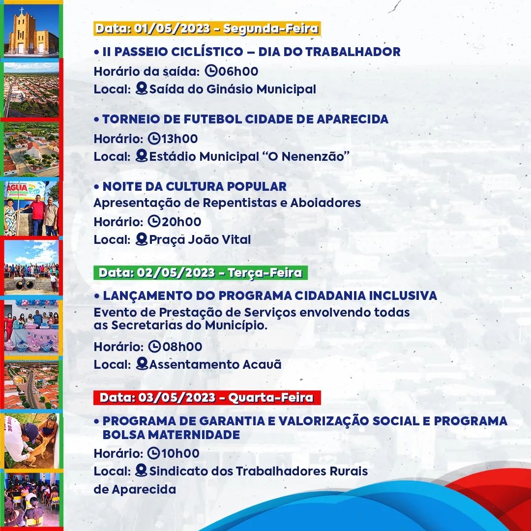 O prefeito da cidade de Aparecida, João Neto (PL) anunciou nesta terça-feira (25) a programação alusiva aos 29 anos de emancipação política do município, que começa dia 1º de maio e se estende até o dia 7 de maio.