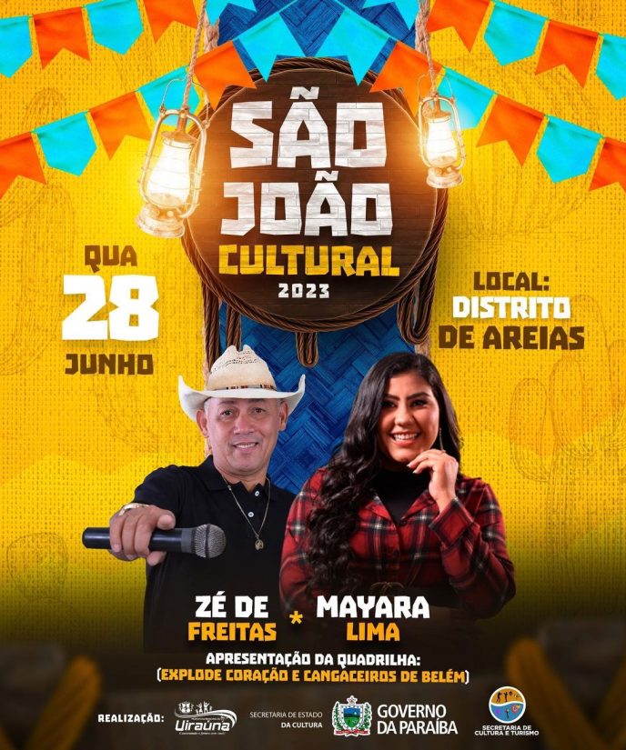 A programação junina terá início no dia 28 de junho e se estenderá até o 30 de junho. Confira as atrações que irão animar o I São João Cultural de Uiraúna: