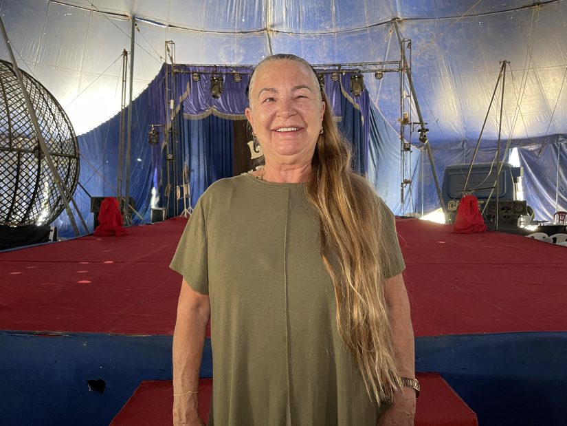“Meu esposo nasceu em circo, então, não deixa de ser as gerações circenses. E assim a gente vai levando a vida. É a vida que a gente conhece”.