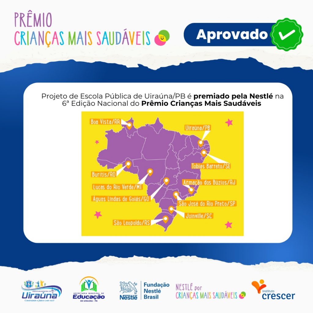 Projeto de escola de Uiraúna é premiado pela Nestlé na 6ª Edição Nacional do Prêmio Crianças Mais Saudáveis